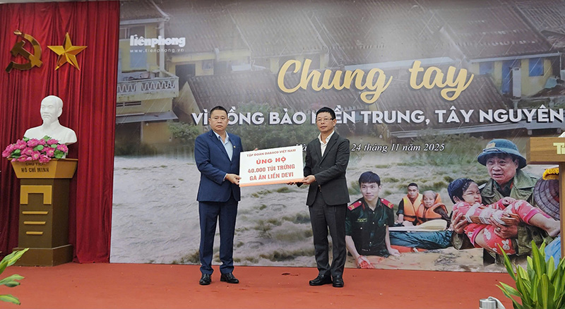 Ông Nguyễn Ngọc Đức, Giám đốc Công ty TNHH Đầu tư & Phát triển Chăn nuôi Gia Công, đại diện Tập đoàn Dabaco cho biết, những phần quà dinh dưỡng này sẽ được Báo Tiền Phong chuyển đến tận tay người dân vùng lũ, giúp bổ sung thực phẩm thiết yếu cho bữa ăn hàng ngày trong bối cảnh sinh hoạt còn nhiều khó khăn.