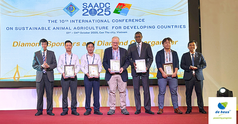 Từ ngày 01 – 04/10, tại TP Cần Thơ, Đại học Cần Thơ đăng cai tổ chức Hội nghị quốc tế lần thứ 10 về nông nghiệp chăn nuôi bền vững tại các nước đang phát triển (SAADC 2025). Sự kiện thu hút hàng trăm chuyên gia, nhà khoa học và doanh nghiệp trong và ngoài nước. Tập đoàn De Heus đồng hành với vai trò nhà tài trợ vàng, thể hiện cam kết thúc đẩy ngành chăn nuôi Việt Nam phát triển theo hướng bền vững và có trách nhiệm.