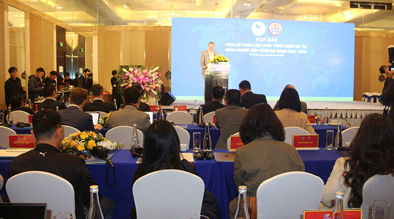 Thứ trưởng Phùng Đức Tiến và đại biểu chủ trì buổi họp báo công bố Chiến lược phát triển chuỗi giá trị nông nghiệp bền vững giai đoạn 2026 – 2036.