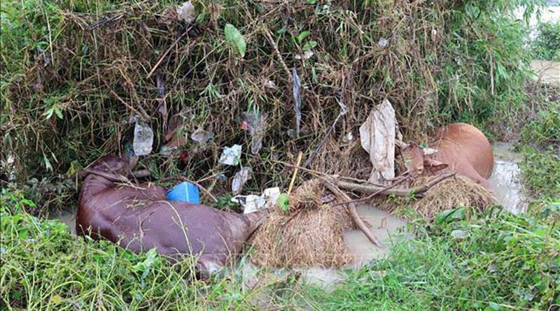 Trâu bò ở Đắk Lắk chết do mưa lũ. Ảnh: Đỗ Trưởng